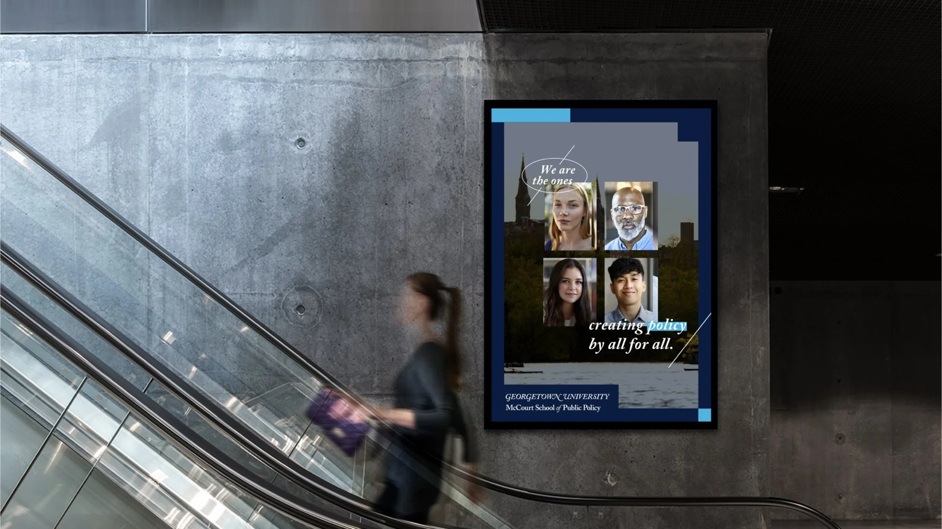 Outreach and brand building campaign for Georgetown University McCourt School of Public Policy, focused on "We Are the Ones" - represented through out of home, lookbook and newspaper takeover content.